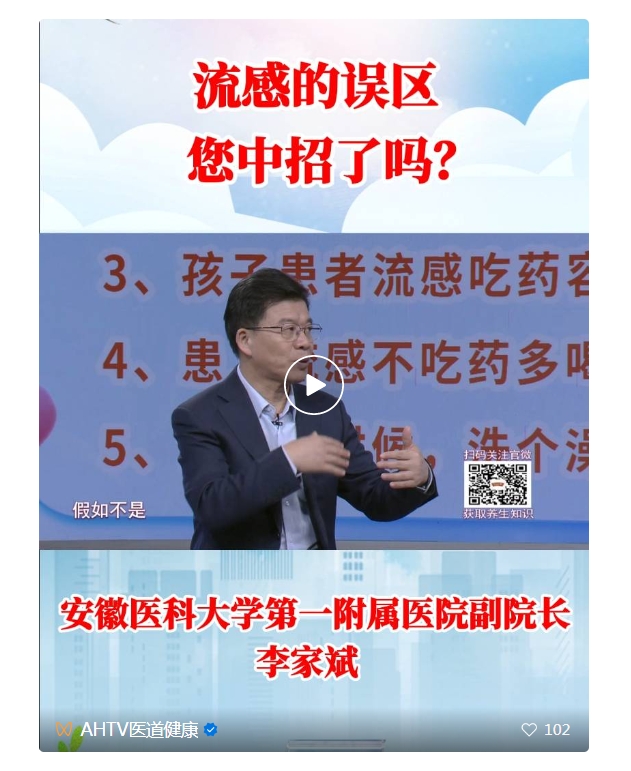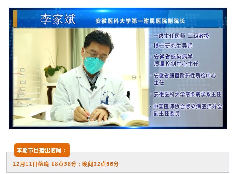 本期《医道健康》邀请安徽医科大学第一附属医院副院长 感染病科主任医师 李家斌做客演播厅,带您了解流感防治。