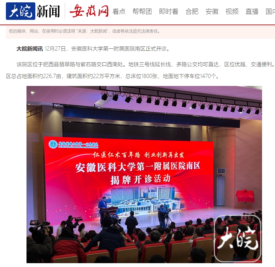 大皖新闻讯12月27日,安徽医科大学第一附属医院南区正式开诊。