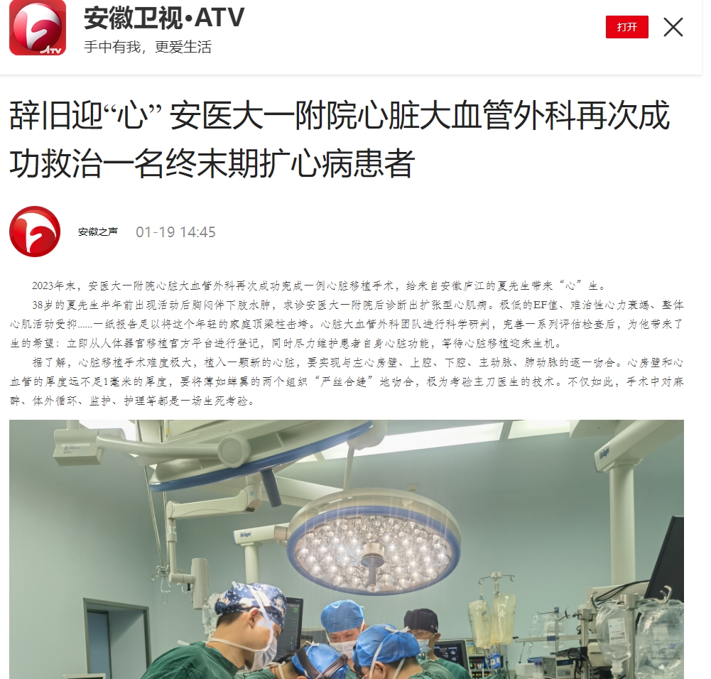 2023年末,安医大一附院心脏大血管外科再次成功完成一例心脏移植手术,给来自安徽庐江的夏先生带来“心”生。