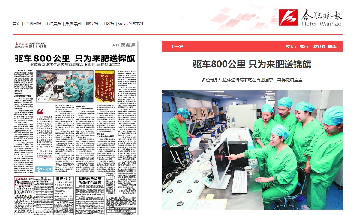2023年,经朋友介绍,李华了解到地处合肥的安医大一附院有个“线粒体遗传病生育咨询专病门诊”,同年3月她来到医院见到纪医生。经过知情同意,她接受胚胎植入前线粒体遗传学检测助孕,胚胎移植后获得了临床妊娠。在连“闯”促排、取卵、移植、羊水穿刺等多个“关卡”后,今年2月,她成功诞下了一个健康的孩子。