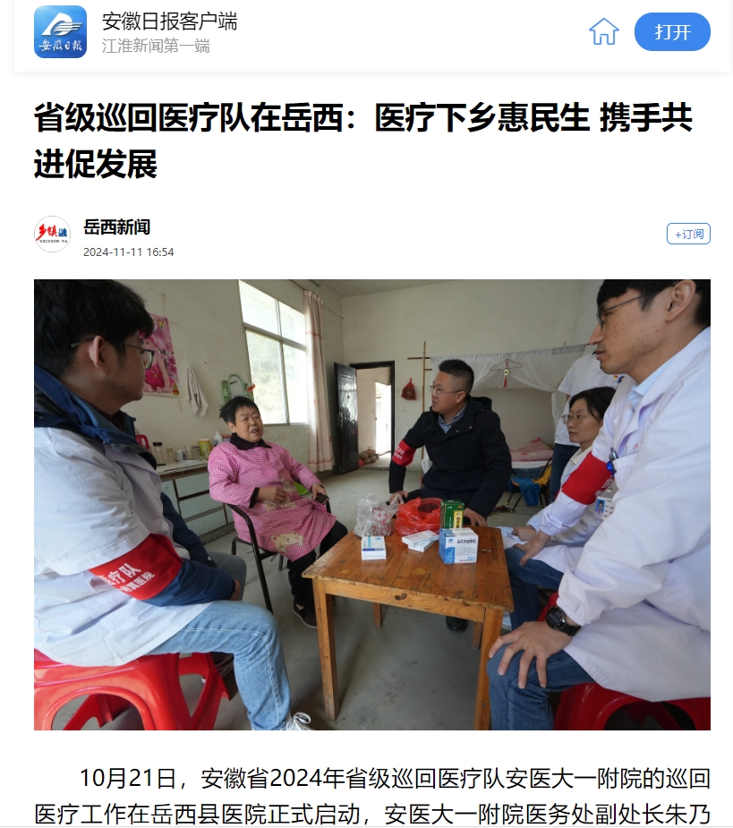 与此同时,巡回医疗队还高度重视与县医院及乡镇卫生院的协作交流。他们通过组织疑难病例讨论、进行教学查房、举办学术讲座、给予手术指导以及开展病历质控等活动,将先进的医疗理念与诊疗技术毫无保留地传授给基层医护工作者,有力地提升了基层医疗服务水平。10月28日,在岳西县医院,巡回医疗队于危难之际大显身手,成功抢救了一位异物卡喉、命悬一线的患者,高效应对复杂救治挑战,赢得了岳西县人民及患者家属的高度赞誉。