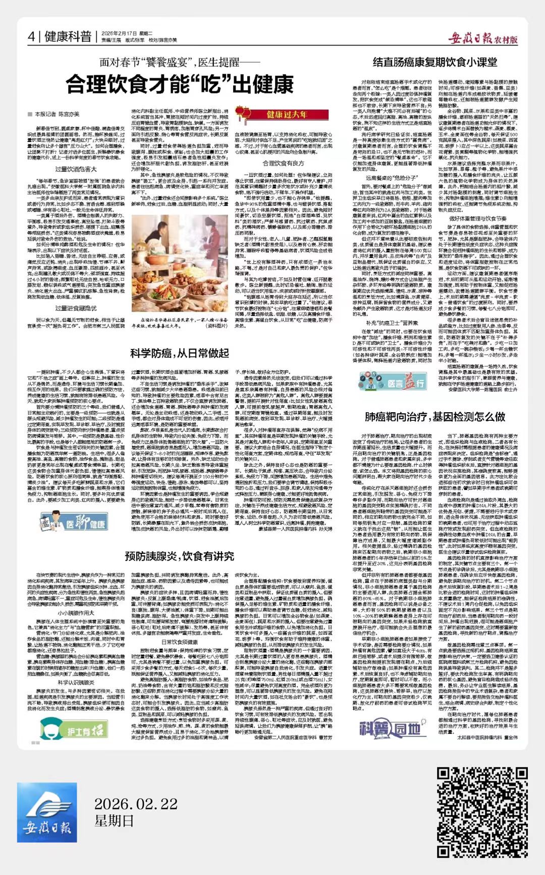 “饱腹感从肠胃传到大脑存在延迟,所以当你意识到撑的时候,其实早就吃过量了。”他建议,春节饮食最好控制在“七分饱”,注意细嚼慢咽和各餐间隔,尽量选择低盐、低脂、低糖,以及高膳食纤维、高维生素、高蛋白饮食,从日常“吃”出健康,防病于未然。