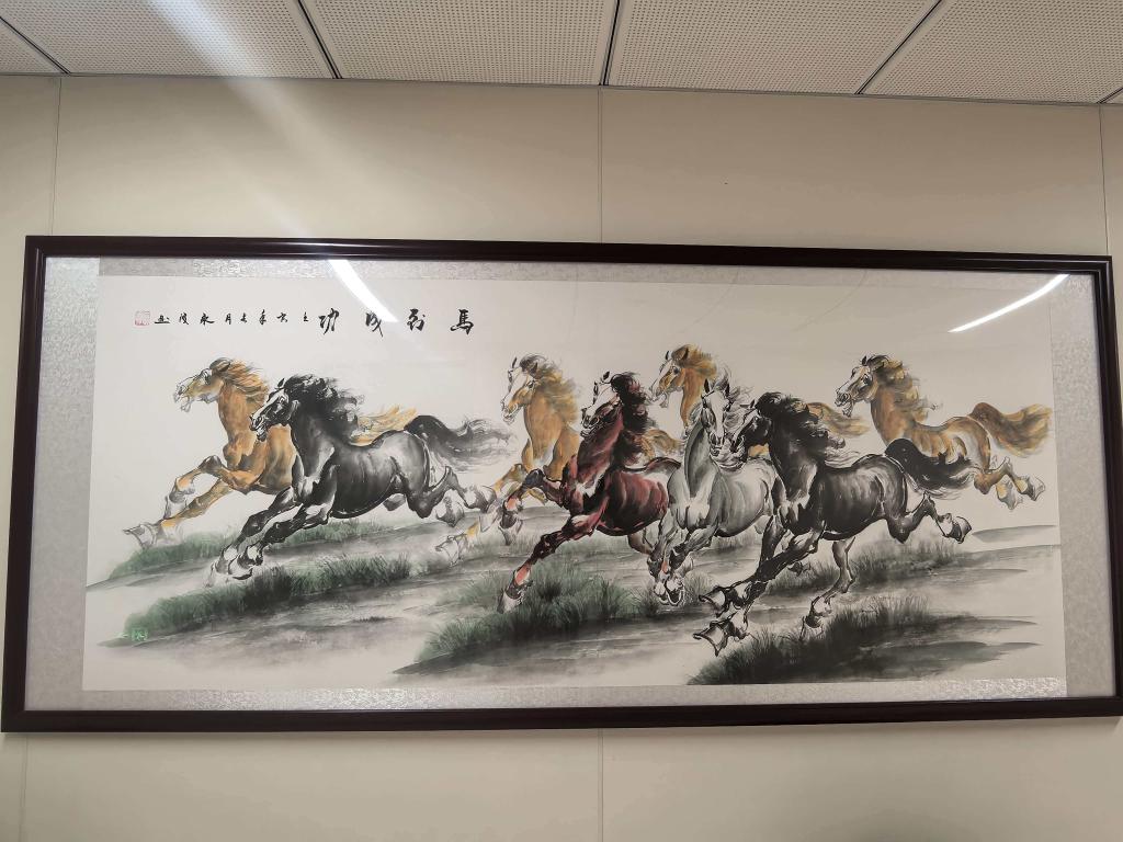 近日,一面精心装裱、气势恢宏的“八骏图”水墨画,悬挂在医学影像科放射介入二病区走廊墙壁上,成为病区一道温暖而又独特的人文风景。这幅作品并非寻常装饰,而是由一位曾在病区接受治疗的患者易先生(化名)及其家人,将自己亲手绘制的画作,作为感激科室全体医护人员的特殊礼物。