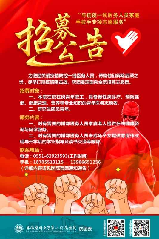 志愿者招募时间:即日起,招募后具体服务时间通过医院“安医一附院志愿者群”QQ群及时发布。