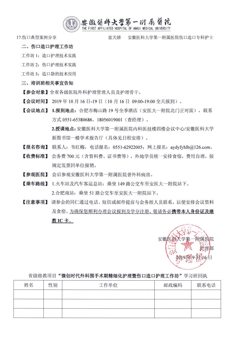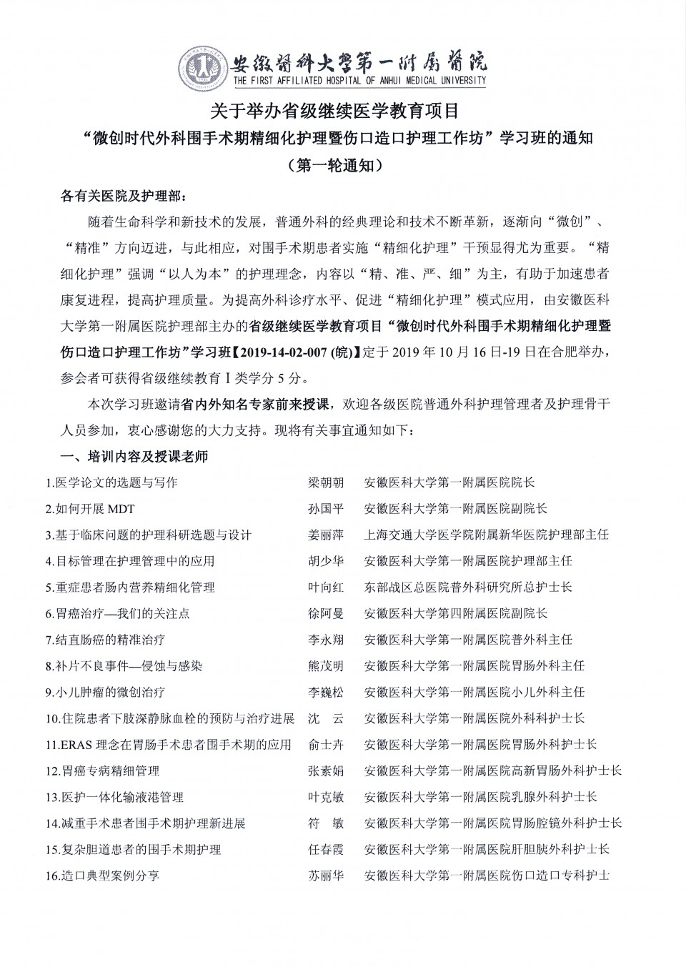 关于举办省级继续医学教育项目“微创时代外科围手术期精细化护理