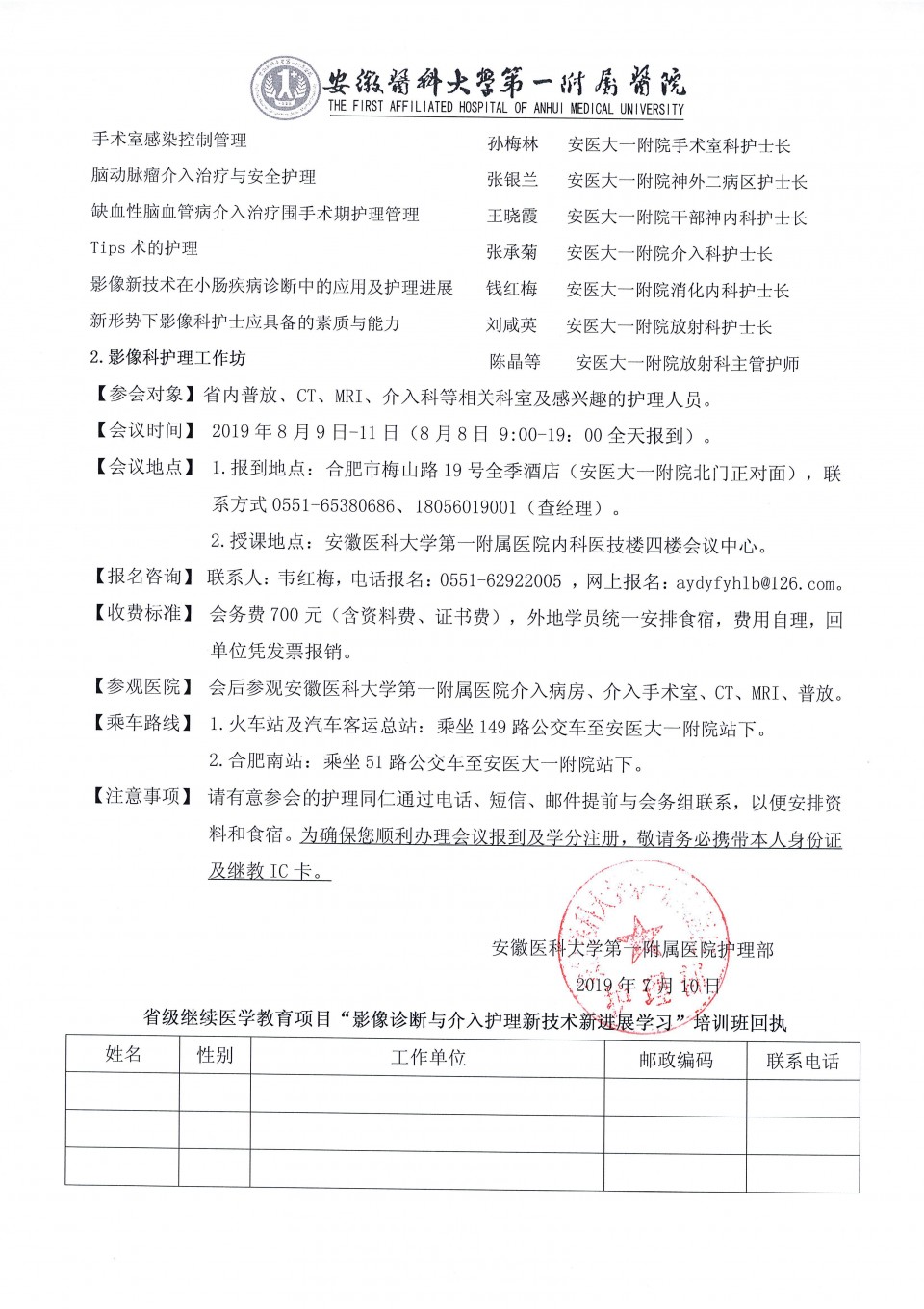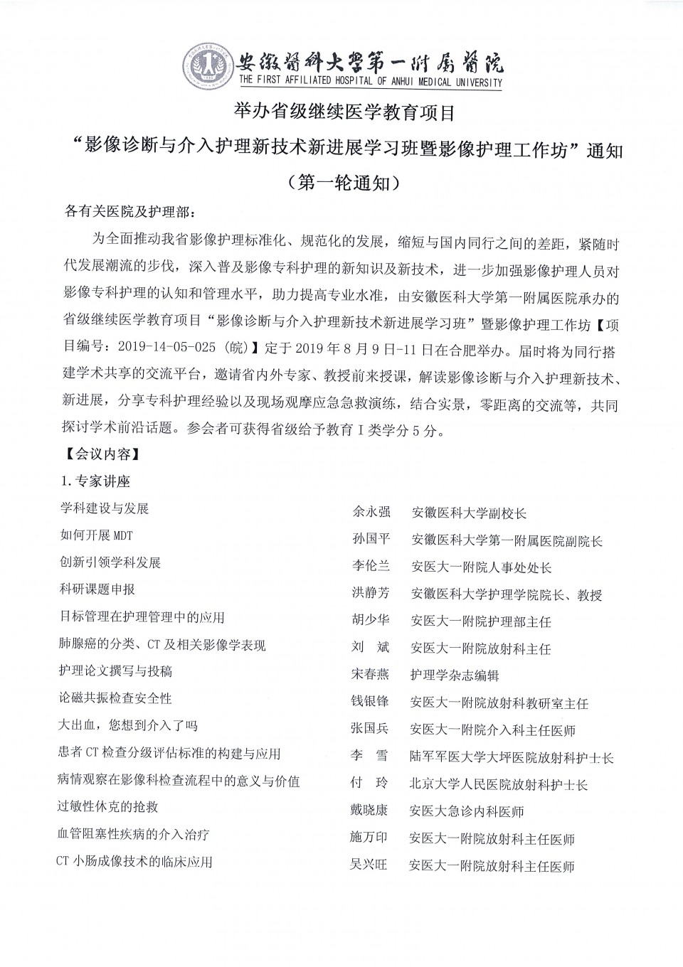 关于举办省级继续医学教育项目“影像诊断与介入护理新技术新进展学习班暨影像护理工作坊”的通知