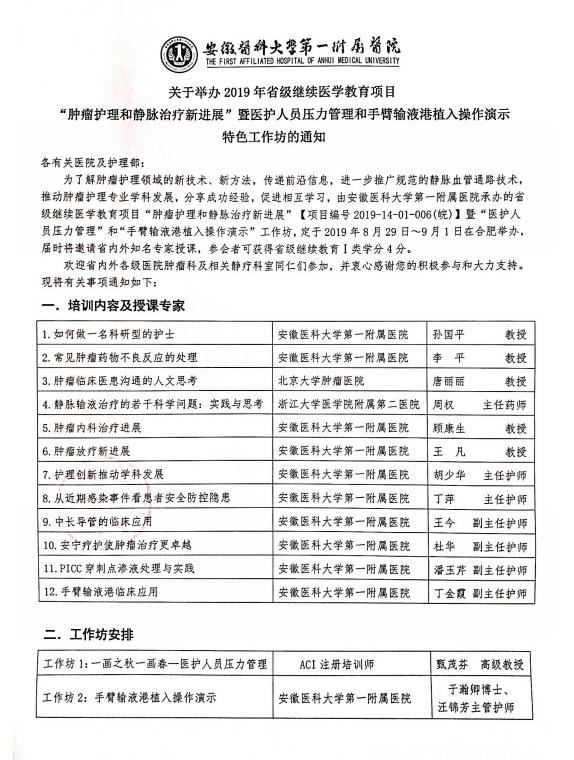 附件: “肿瘤护理和静脉治疗新进展”暨医护人员压力管理和手臂输液港植入操作演示特色工作坊通知.pdf