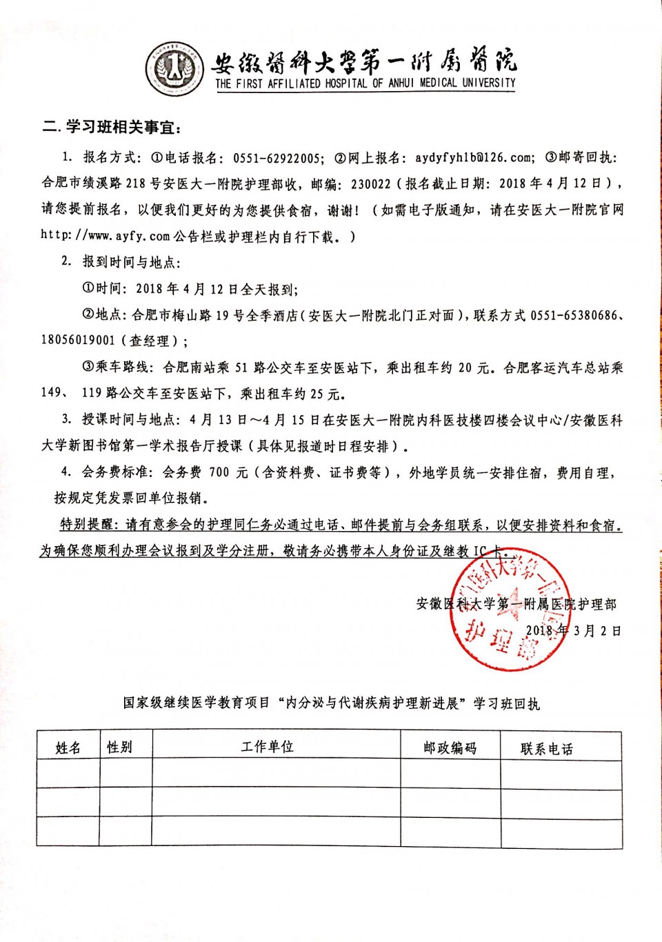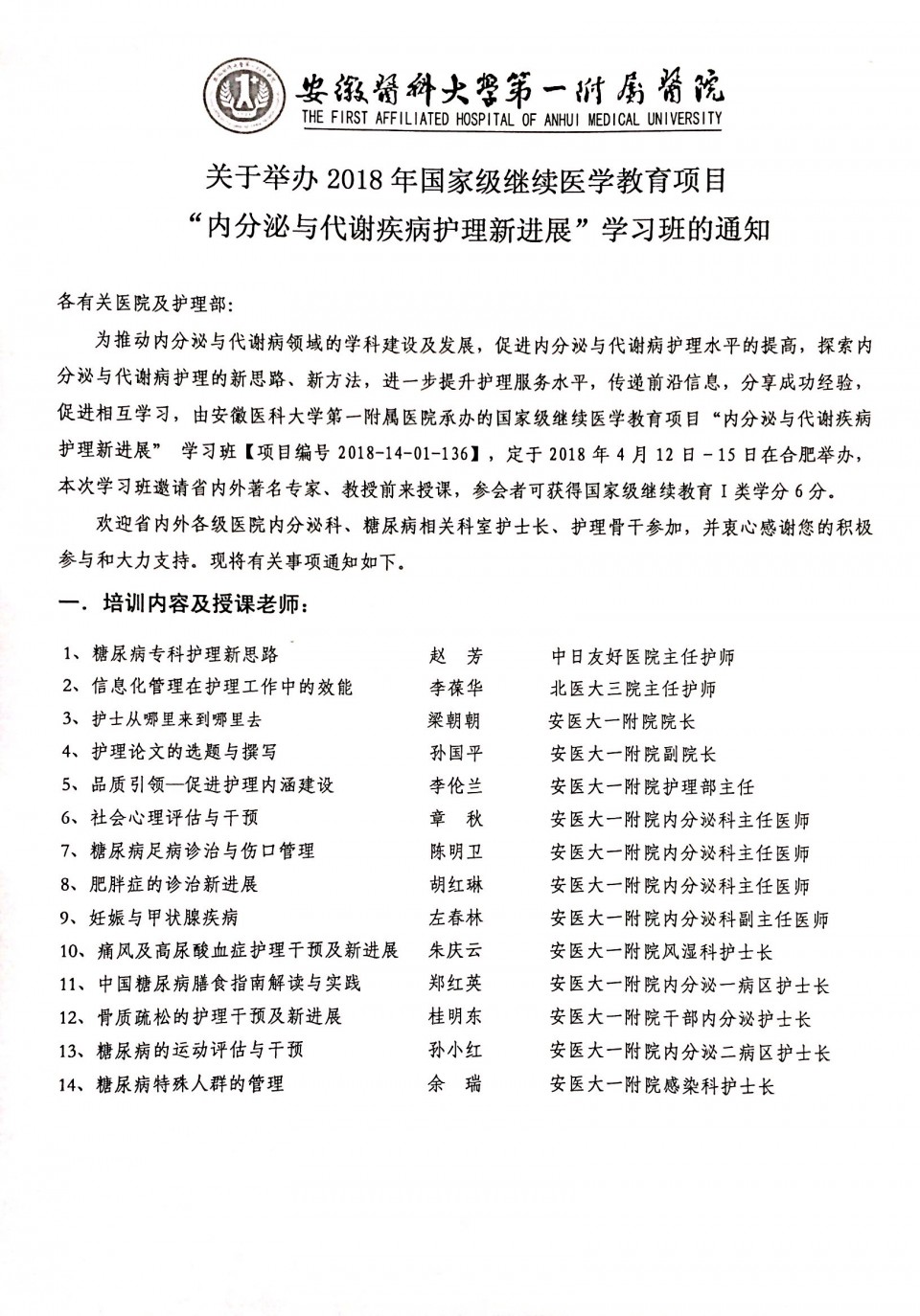 关于举办国家级继续医学教育项目“内分泌与代谢疾病护理新进展”学习班的通知