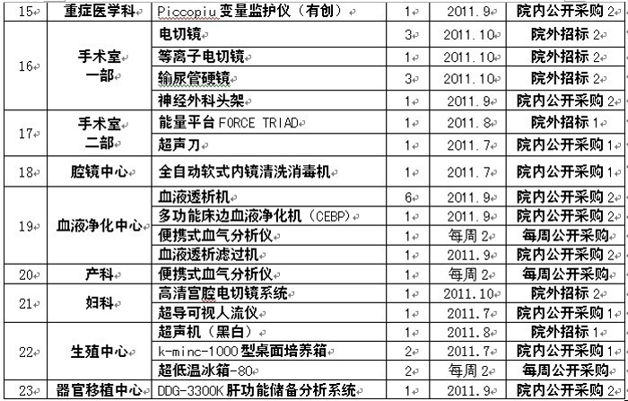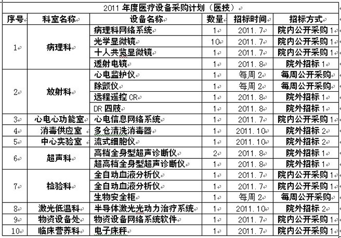 2011年度医疗设备采购计划
