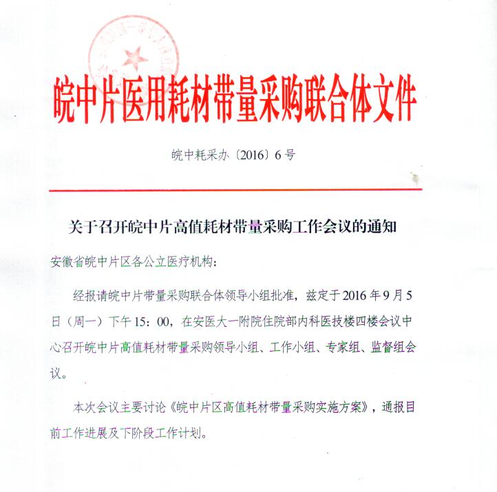 关于召开皖中片高值耗材带量采购工作会议的通知