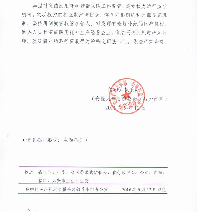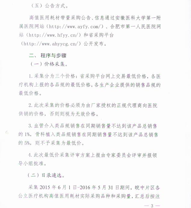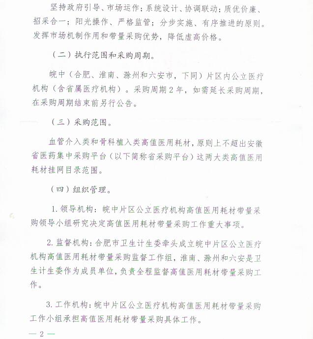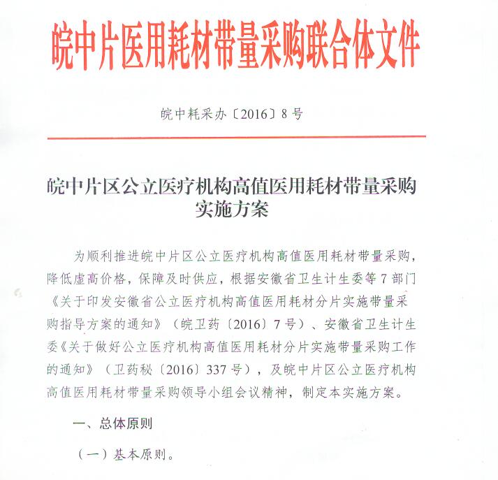 皖中片区公立医疗机构高值医用耗材带量采购实施方案
