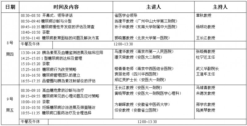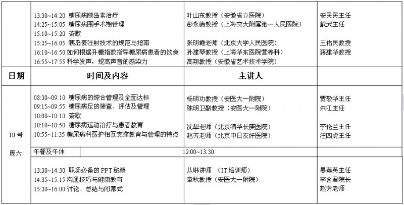 第八届全国糖尿病教育者培训班课程安排