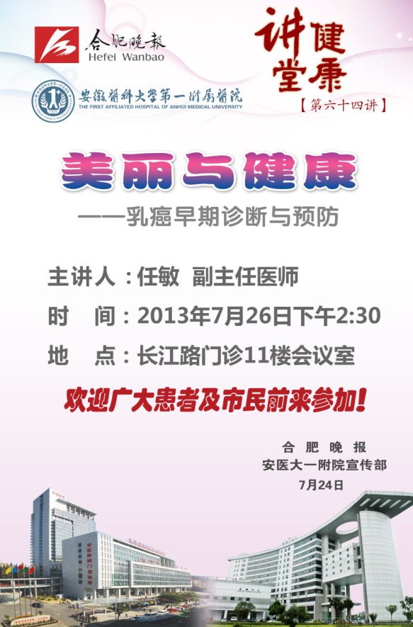 健康讲堂第六十四讲——美丽与健康——乳癌早期诊断与预防
