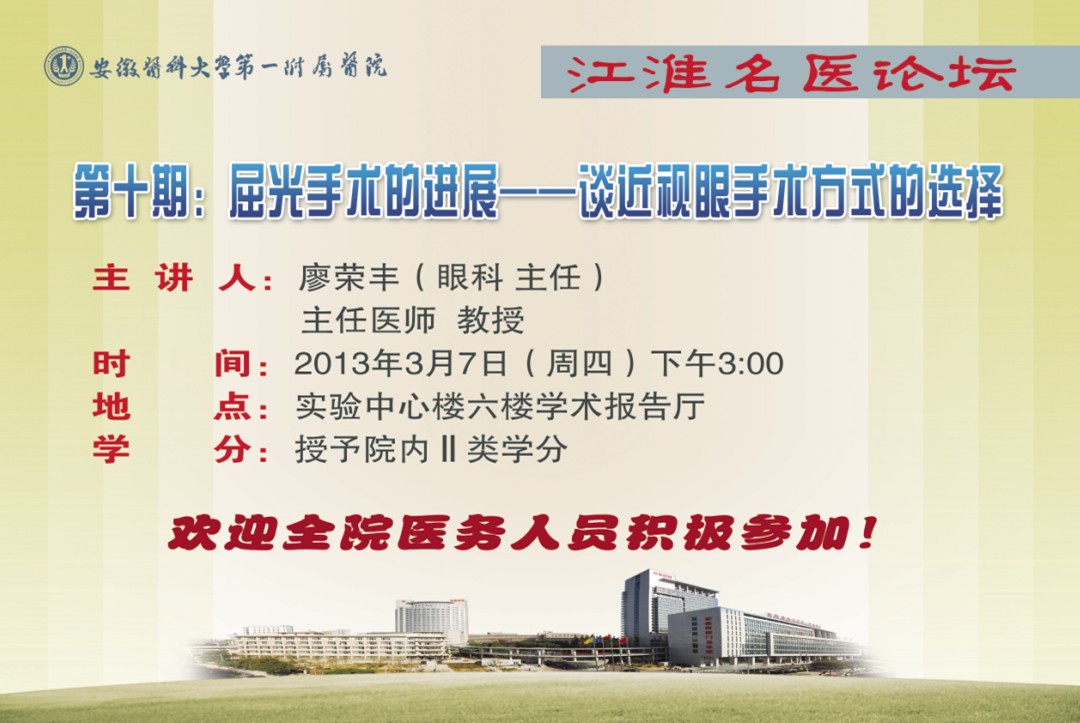 江淮名医论坛——第十期:屈光手术的进展——谈近视眼手术方式的选择