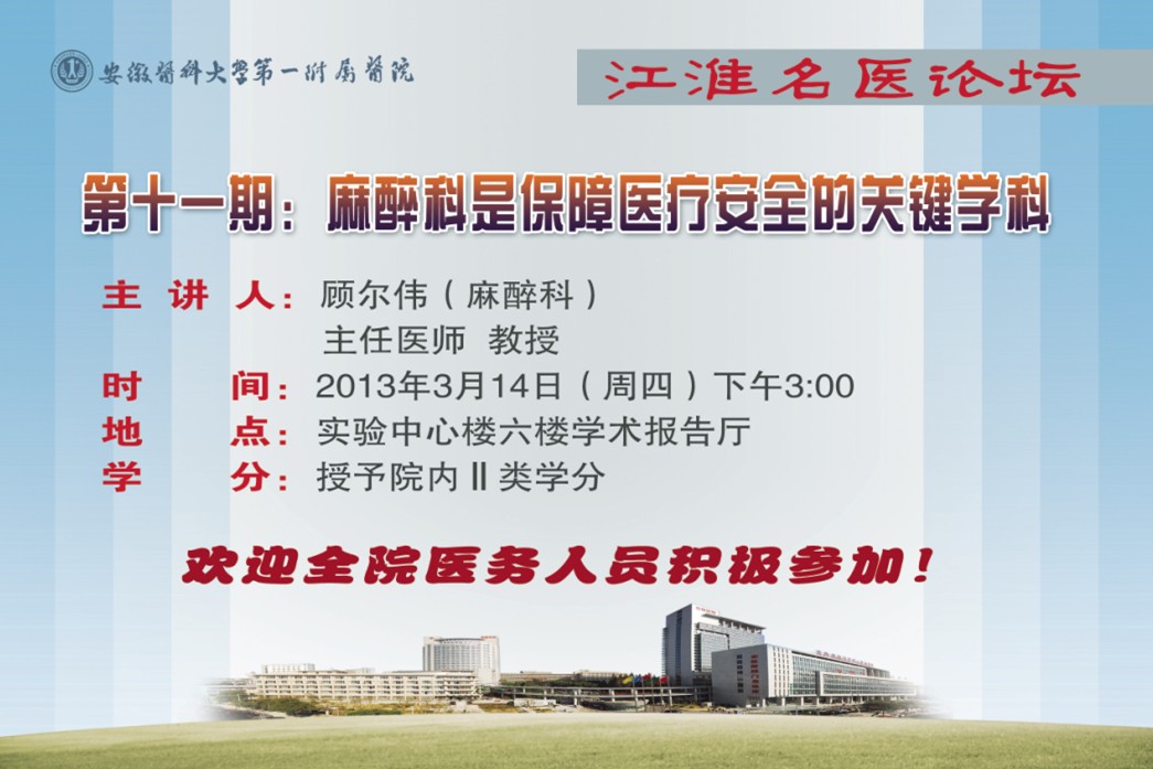 江淮名医论坛——第十一期:麻醉科是保障医疗安全的关键学科
