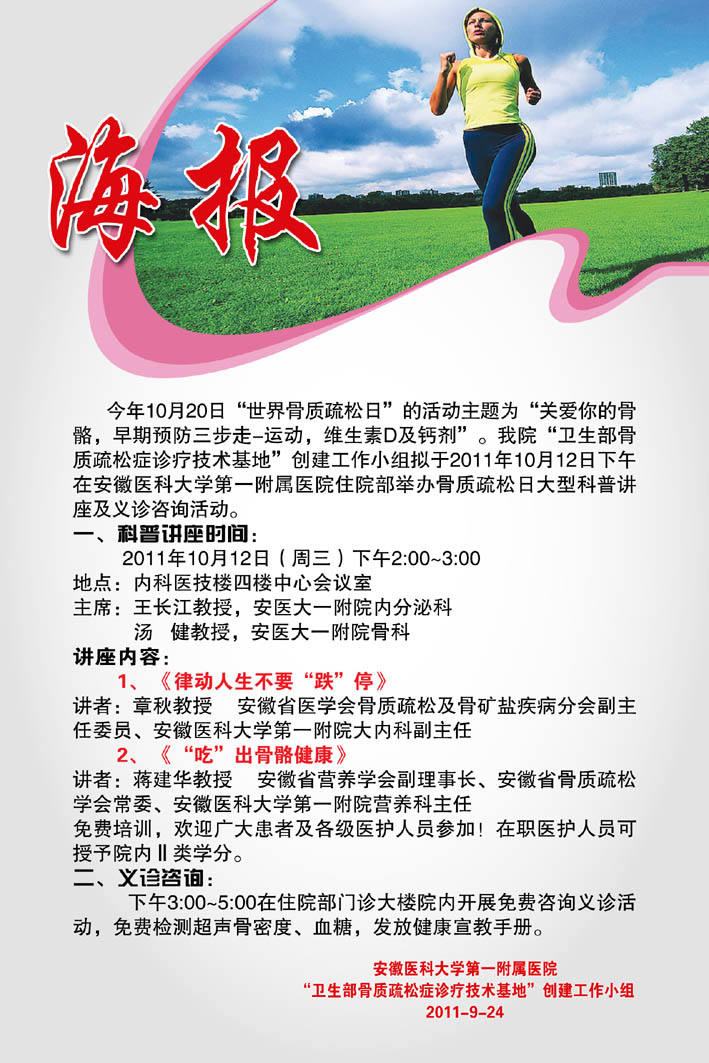 我院将举办骨质疏松日大型科普讲座及义诊咨询活动