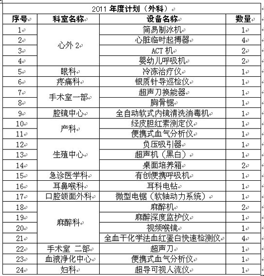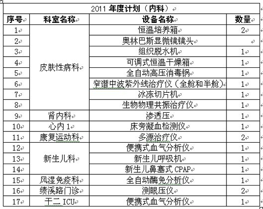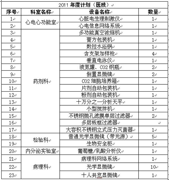 我院2011年度计划中部分医疗设备的标书已制作完毕,将于近期招标采购,请有资质的相关厂商尽快到我院物资设备处报名。