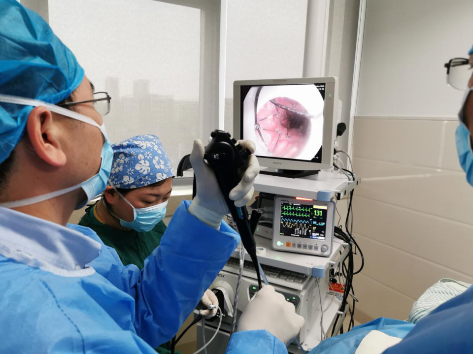 考虑患者情况凶险,经科室集体讨论后,拟采取电子支气管镜下支架置入术,撑起被肿瘤压迫的气管,保障患者生命通道。经呼吸与危重症医学科副主任李永怀团队精心充足的准备,在门诊手术室的密切配合下,成功完成此次经气管镜气管支架置入术。