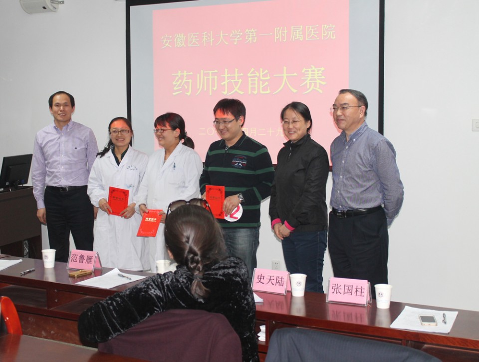 此次大赛,本着公开、公正的原则,笔试和面试均由院外专家出题。面试部分邀请了合肥市第一人民医院药剂科主任范鲁雁,省立医院药剂科副主任史天陆、滨湖医院药剂科主任吴华、合肥市第三人民医院药剂科主任张国柱、安徽医科大学第四附属医院药剂科主任郑晓青等专家担任评委。