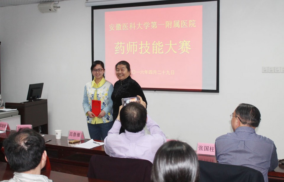 大赛采取笔试加面试的形式。通过笔试遴选出15名药师参加面试,面试采用评委现场评分,当场宣布结果的方法。15名参赛选手认真、娴熟地解答问题,赛出了水平,赛出了风采,也赛出了药师们工作和学习中的扎实积累。经过3个多小时的激烈角逐,绩溪路门诊药房孙继敏荣获一等奖;临床药学室黄燕和内科楼住院部药房刘红获得二等奖;内科楼住院部药房马慧敏、临床药学室方会慧和静配中心许元宝获得三等奖,现场给予了获奖者热烈掌声,专家评委为获奖选手颁奖。