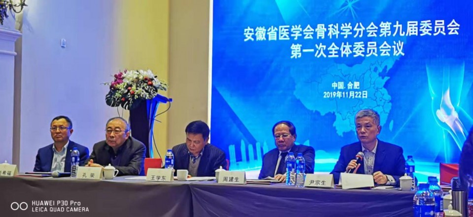 2019年11月22日,安徽省医学会骨科学分会进行了换届改选,成立了安徽省医学会骨科学分会第九届委员会,同时召开了第九届委员会第一次全体委员会议。我院关节外科主任尹宗生教授当选为主任委员。会议总结了第八届委员会的工作,安徽省医学会秘书长王学东对第八届委员会所取得的成绩给予了充分的肯定,对新一届委员会的成立表示祝贺,希望新一届委员会,不忘初心,砥砺前行,实现安徽省骨科事业的新突破。主任委员尹宗生教授汇报了下一阶段的工作设想,提出“抓基层,强青年,重创新,铸品牌”的发展口号,实现安徽省骨科事业医、教、研全面协调可持续发展。近年来,医院关节外科病区在快速康复理念的指导下,在智能化微创化人工关节置换、单髁置换、保膝保髋手术方面取得了长足的进步。开展的导航下人工关节置换以精准、微创的治疗理念获得了业界的广泛认可,曾与西安交通大学第一附属医院、新桥医院等多家医院联合举行培训班并进行手术演示,开展的3D打印技术为复杂的关节翻修提供了可视化的处理方案,省内最大数量的单髁置换患者群、导航下HTO及髋臼旋转截骨为保髋保膝治疗提供了多样的选择。