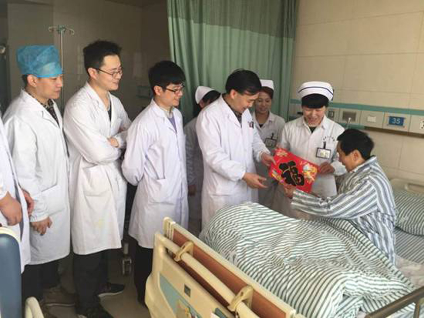 金猴开玉宇,紫燕舞新春。大年初一,为了让住院患者感受到过年的气氛,体现医院人文关怀,泌尿外科医生和护士们为病区每一个住院患者送去拜年“福”字,祝福早日康复,吉祥如意。 “没有想到过节期间你们一如往常那样忙碌,还给我们送来了问候,真的是非常感谢你们,我一定要把在医院过年的照片好好珍藏。”年三十急诊入院泌尿外科一病区的患者张某感激的说。