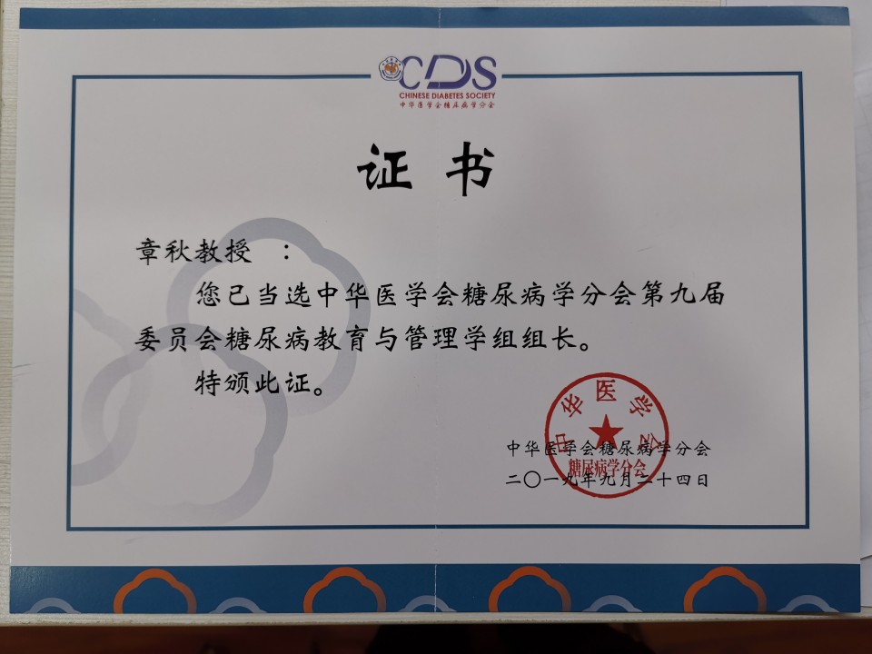 10月27日,中华医学会糖尿病学分会第九届委员会糖尿病教育与管理学组成立会议暨第一次工作会议在合肥召开,我院内分泌科主任章秋教授当选组长。