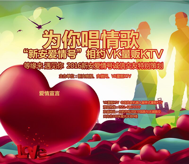 为你唱情歌 “新安爱情号”相约VK量贩KTV——“等缘来 遇见你”2016新安爱情号诚心交友特别策划