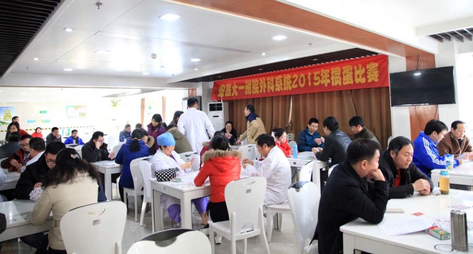 2015年12月18日,医院工会、棋牌协会在职工餐厅5楼举办2015年外科系统掼蛋比赛,来自外科系统(20个科室)共58名选手参加比赛。比赛采用抽签和淘汰制的方式进行,比赛现场有我院知名外科专家和教授,也有年轻有为的青年医生和护士,选手们经过整整6个小时的紧张角逐,来自心外一病区的张新兰、鲍红霞荣获一等奖;干部五楼的谢春松、左孝民,胃肠一病区彭程、熊茂明荣获二等奖;麻醉科的陈士寿、袁浩,急诊外科陈卫东、张剑林,胃肠一病区韦之见、陈博荣获三等奖。医院党委副书记戴晓支为获奖选手颁奖。此次比赛响应我院艺术节职工协会季的号召,旨在活跃职工的业余文化生活,增加了解、促进友谊。棋牌协会将在工会的领导下于明年继续举办内科系统、医技门急诊系统、行政后勤系统的掼蛋比赛,挖掘出掼蛋高手参加院外比赛交流。