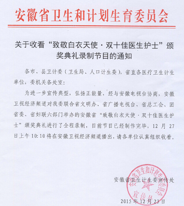 关于收看“双百优双十佳”颁奖典礼电视录制节目的通知