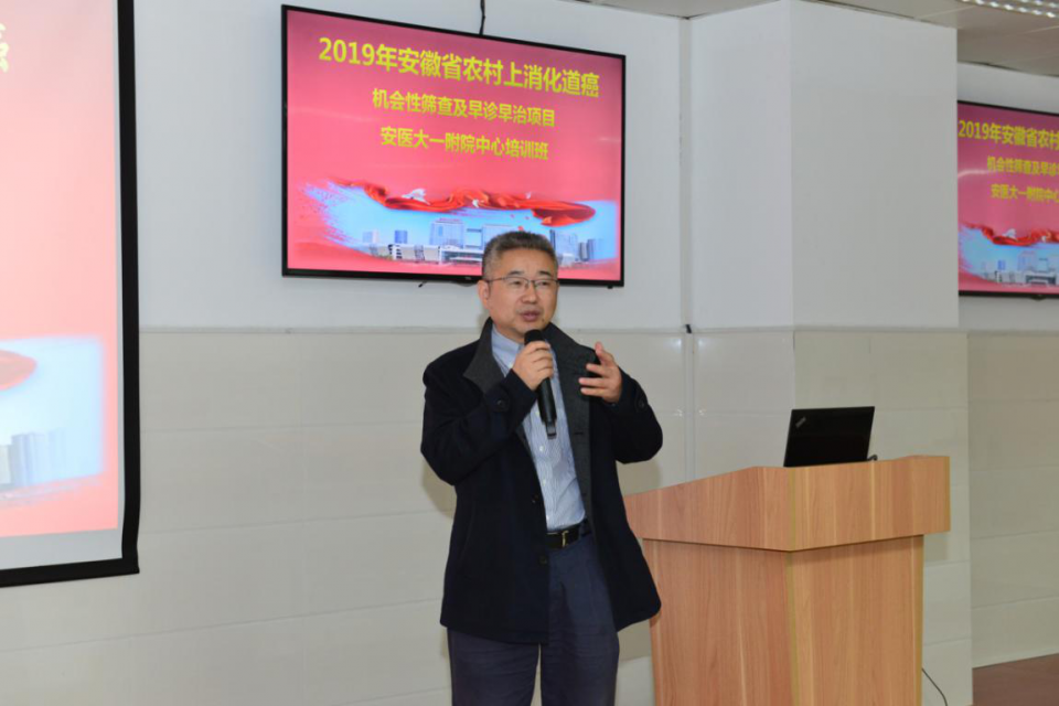 为做好2019年度我省上消化道癌机会性筛查及早诊早治项目工作,进一步提高项目地区上消化道癌早诊早治技术水平,11月17日,省疾控中心主办、我院承办的2019年安徽省农村上消化道癌机会性筛查及早诊早治项目安医大一附院区域中心技术培训班在高新院区消化内镜中心召开。