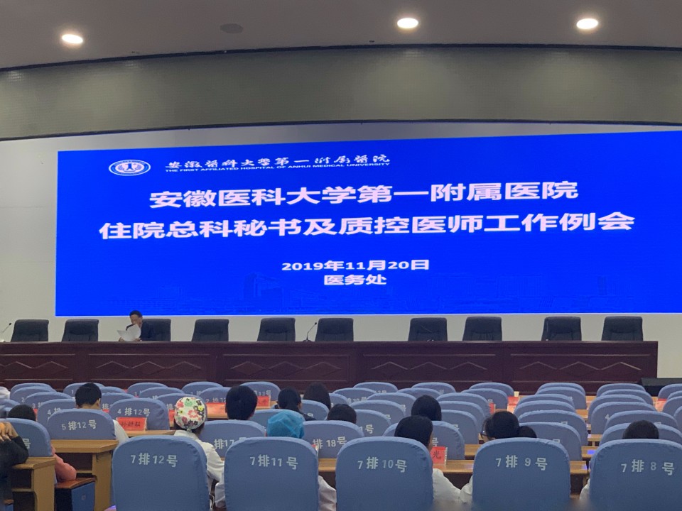 11月20日下午,医院在内科医技楼四楼会议中心召开了2019年住院总科秘书及质控医师工作例会。医院住院总医师、科秘书及医疗质控医师共100余人参加会议。
