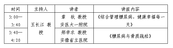 11月14日下午在安医大一附院中心实验楼6楼开展糖尿病知识讲座,具体安排如下: