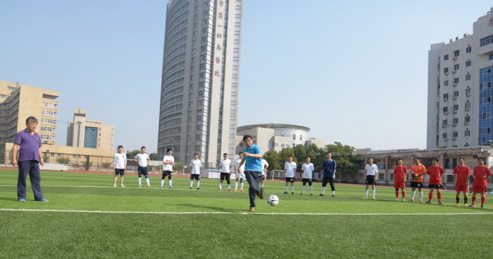10月11日下午,院足协举办的职工足球友谊赛在校球场上演精彩对决。院党委副书记戴晓支为比赛开球,标志着医院第六届文化艺术节“协会活动季”拉开了帷幕。对阵双方分别是行政、医技联队和内、外科联队,队员们奔跑积极,对抗激烈,充分发挥了奋勇拼搏的精神,在赛场上尽情挥洒汗水、一展球技。