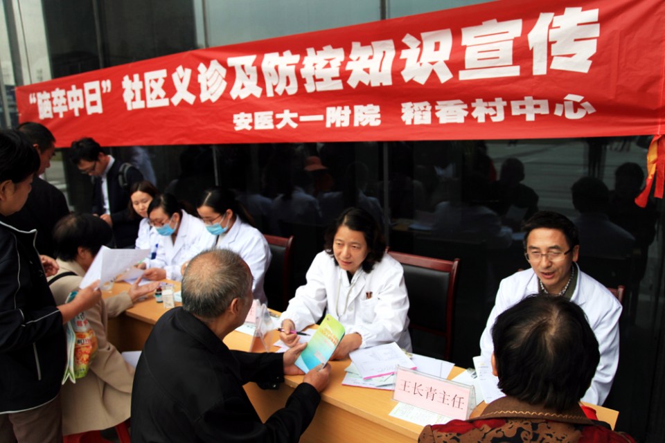 10月28日下午,在第10个“世界卒中日”来临之际,我院神经内科联合体检中心在稻香村街道举行了大型义诊活动。神经内科主任医师王长青、副主任医师杨卫民和急诊内科副主任医师秦克秀现场接受了市民的咨询,为广大市民带来了脑卒中相关疾病的防治知识。义诊医护人员还为市民免费提供了测血压、测血脂和测血糖等体检项目,并向市民赠送了相关科普手册,受到了市民的极大欢迎。