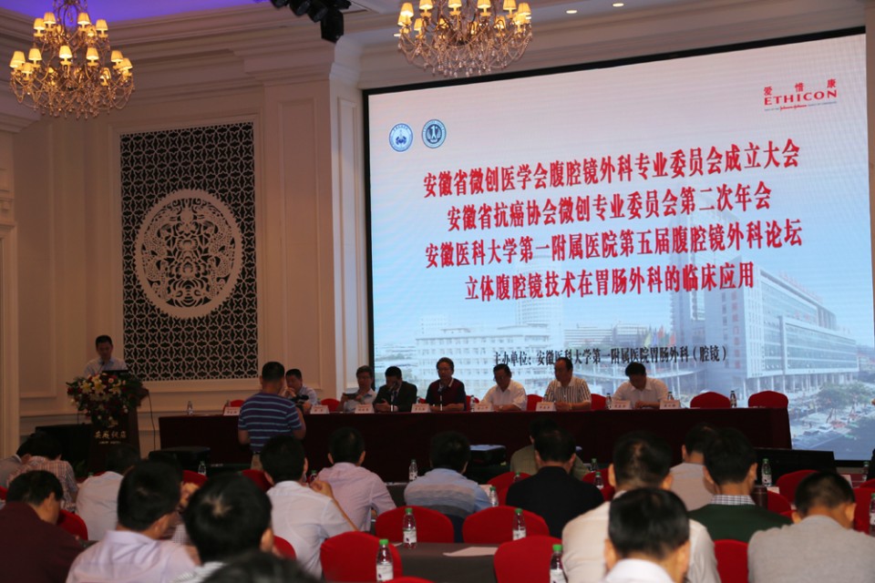 2015年7月3-4日为期2天的“安徽省微创医学会腹腔镜外科专委会成立大会,安徽省抗癌协会微创专业委员会第二次年会,安徽医科大学第一附属医院第五届腹腔镜外科论坛,立体腹腔镜技术在胃肠外科的临床应用国家级继教班”会议在安徽合肥成功举行,本次会议由安徽医科大学第一附属医院普外胃肠外科(腔镜)病区主办。本次会议中一个重要内容为2015年“爱惜龙”杯中青年医师腔镜胃癌手术视频大赛,来自包括我院在内的省内多家三甲医院的7个视频进行了激烈的比赛,在这场激烈的比赛中中青年医师的手术视频得到了在场的专家评委的肯定及批评指正,使参加比赛及会议的中青年医师收益匪浅,为提高腔镜胃癌手术提出了指导方向,进一步推动中青年医师胃肠外科腔镜技术的发展。本次大会还举行了“安徽省微创医学会腹腔镜外科专委会成立大会”,来自安徽医科大学第一附属医院的孟翔凌教授被选为名誉主委,李永翔教授任主委。大会开幕式上我院金小干副院长及医务处李元海处长致辞,并邀请国内著名胃肠癌专家及近300名来自全省各地市及县级胃肠及相关专业基础及临床研究工作者参加了本次大会。会上学者们就当今胃癌标准手术合理淋巴结清扫范围及质量控制、腹腔镜进展期胃癌网膜囊切除术的技巧、胃癌快速康复外科与机器人技术的应用、胃癌手术组织管理学、胃肠手术新技术应用等诸多问题进行了广泛而深入的交流与研讨。来自四川大学华西医院的胡建昆教授及安徽医科大学第一附属医院的李永翔教授分别现场演示了3D腹腔镜下胃癌根治术及达芬奇机器人腹腔镜下直肠癌根治术,显示了高超的手术技艺和领先的腹腔镜技术,让观者们感受到了微创手术的迅猛发展。与常规腹腔镜和开放手术相比,3D高清腹腔镜手术的优势在于还原了真实视觉中的三维立体手术视野,而且具有放大作用。相当于医生进入了患者体内,可以在各种脏器之间查找有病变的部位,再进行精确的切除和重建。因此,使用3D腹腔镜可以最大限度减少血管、神经的损伤。本次会议创新性的引入3D手术直播技术,与会人员可以在手术转播现场,带上3D眼镜观看手术直播,这样的立体手术直播在安徽省普外科尚属首次,有利于促进安徽省腹腔镜水平的进一步发展,提高医院在此领域的影响。