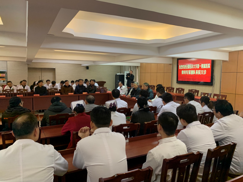 义诊结束后,双方学术交流活动在县中医院继续教育中心进行,我院桂斌捷主任、华兴一主任、张辉主任进行授课。现场讨论热烈、学术氛围浓厚,县中医院的骨科同仁们学习热情高涨,专家们对提出的学术问题一一给予详细解答。