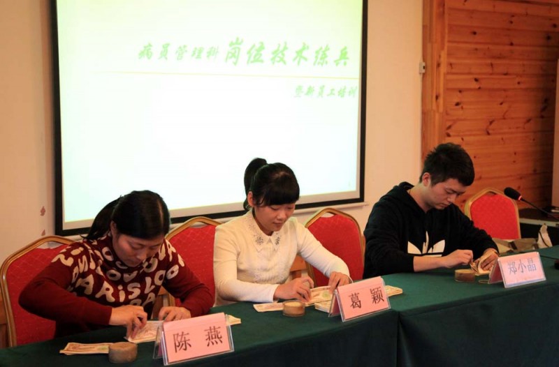 11月23日上午,计财处病员管理科开展岗位技能大练兵暨创建省级“青年文明号”集体文化活动。原安徽省卫生厅厅直团工委书记陈玲、院工会主席张惠如、院团委书记黄尧等出席活动。病员管理科职工及院团委部分同志近70人参加活动。活动现场,科室职工紧密围绕工作实际,开展了以点钞基本功训练为主的岗位技能大练兵大比拼活动,选手们通过手持式、手按式的单指单张和多指多张竞技,既准又快地决出优胜者。团员青年们还以情景剧的方式淋漓尽致地把窗口工作中遇到的挂号、收款、退费流程以及银医机使用方法等场景搬上了舞台,演员们惟妙惟肖的表演和贴近生活的细节,博得现场阵阵掌声和欢笑声。