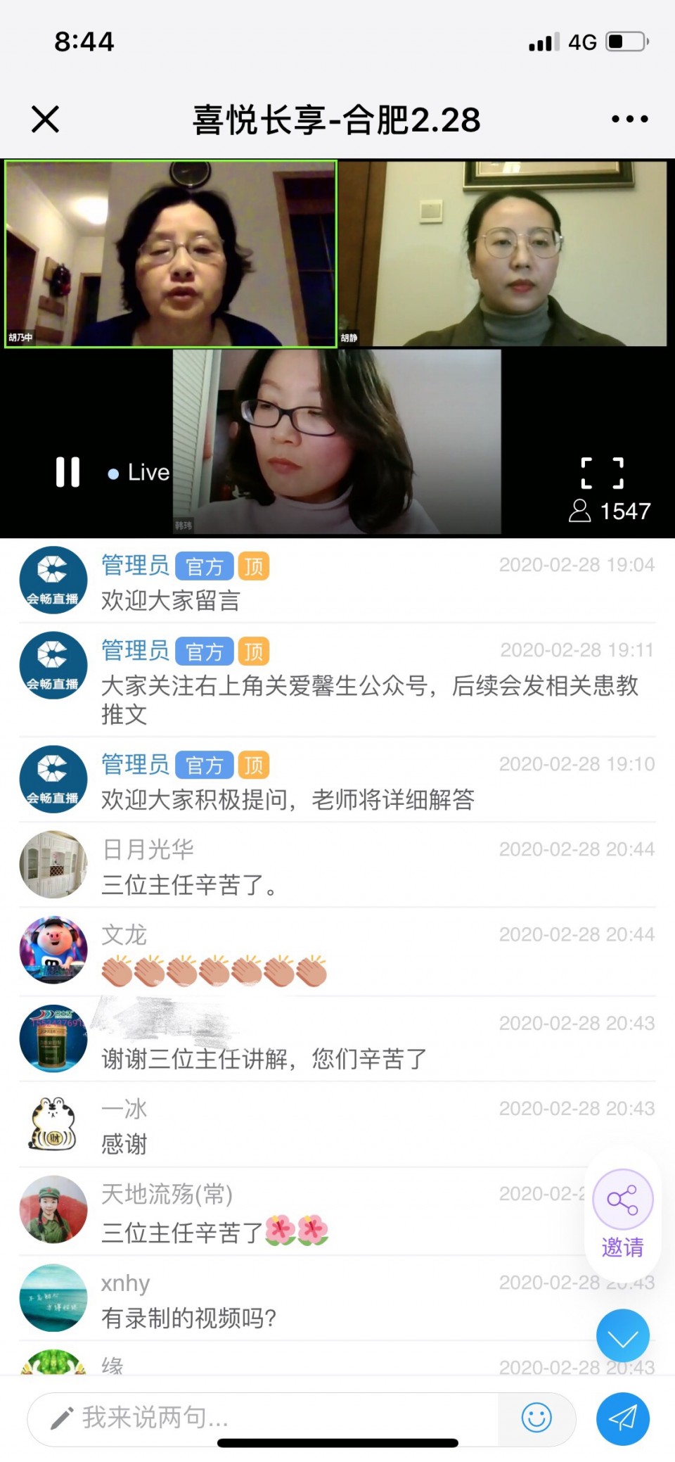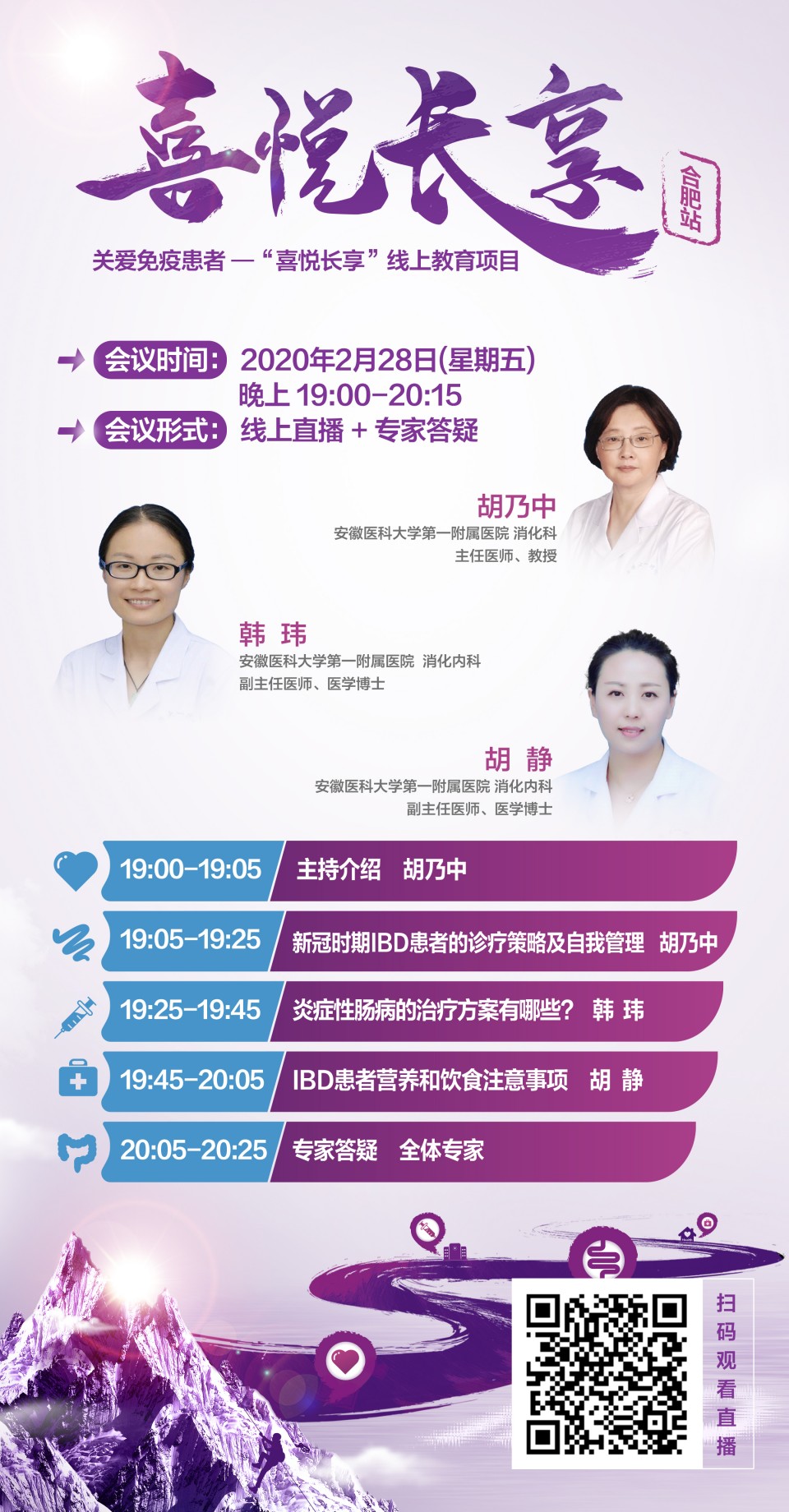 炎症性肠病(IBD)患者需规律治疗,长期随访。为更好解决疫情期间IBD患者的就诊需求,促进医患交流,增加患者自我管理意识,我院消化内科于2月28日举办了IBD线上患友会。消化内科主任医师胡乃中、副主任医师韩玮、胡静为患者进行了答疑解惑。