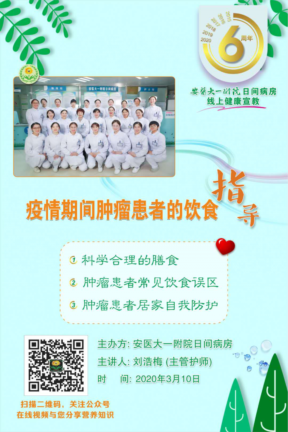 在我院日间病房开诊六周年之际,由放疗科第一党支部和日间病房共同组织,在3月10日推出了线上健康教育活动。
