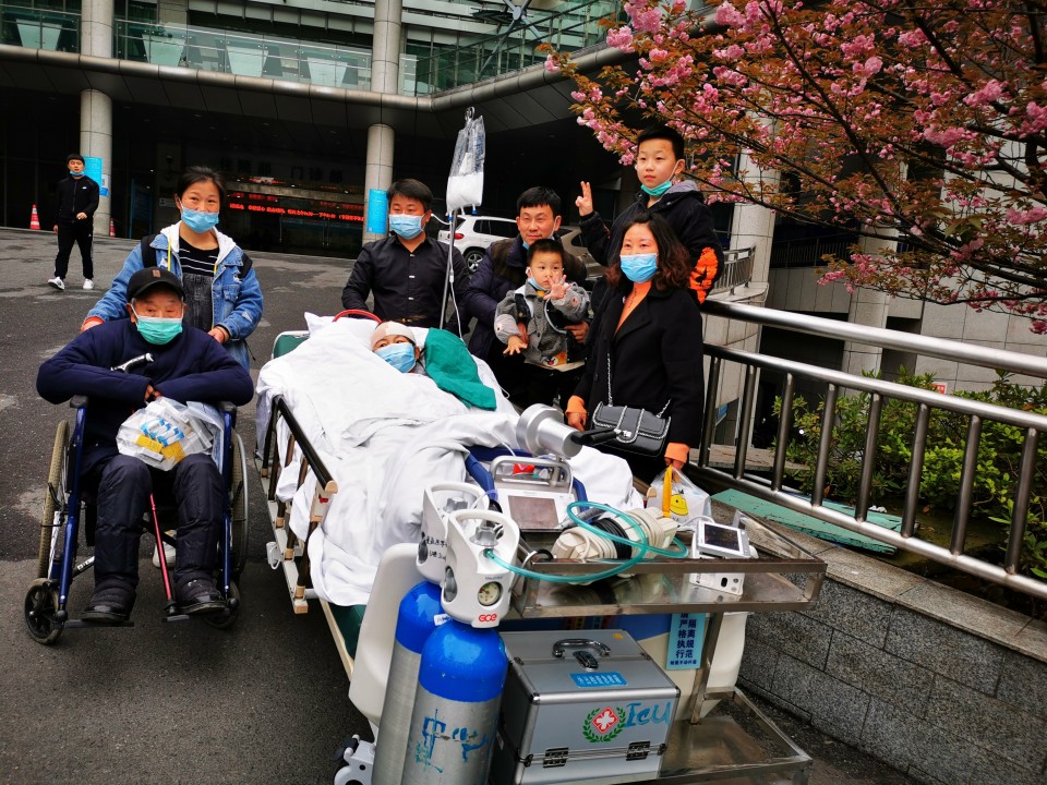 2019年12月15日,该患者氧合在机械通气辅助下仍难以维持。重症医学科邵敏主任主持全科讨论,决定为该患者行ECMO治疗。ECMO小组用时20分钟顺利建立ECMO体外循环,患者生命体征基本平稳。经过二代测序和呼吸与危重症学科二病区副主任胡先纬冷冻肺活检,该患者考虑为病毒性肺炎,肺纤维化。随着治疗的进行,邵敏主任带领科室团队用专业和耐心一一解决ECMO运转的相关并发症等问题。经过科室医护团队的精准血流动力学调整及综合治疗、精心个性化护理,患者肺功能逐渐恢复。3月30日复查CT达到撤机标准。31日顺利撤除ECMO,继续康复治疗。