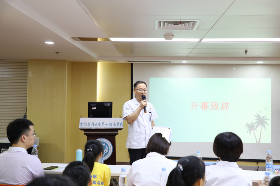 内分泌风湿免疫党支部书记赵广碧致开营辞。内分泌科章秋主任、代芳主任医师、孙莉、罗莉、夏莉副主任医师、郑红英、孙小红护士长,儿科潘道香、刘晓静副主任医师等参加开营仪式。内分泌科王岩、许慕容主持夏令营活动。
