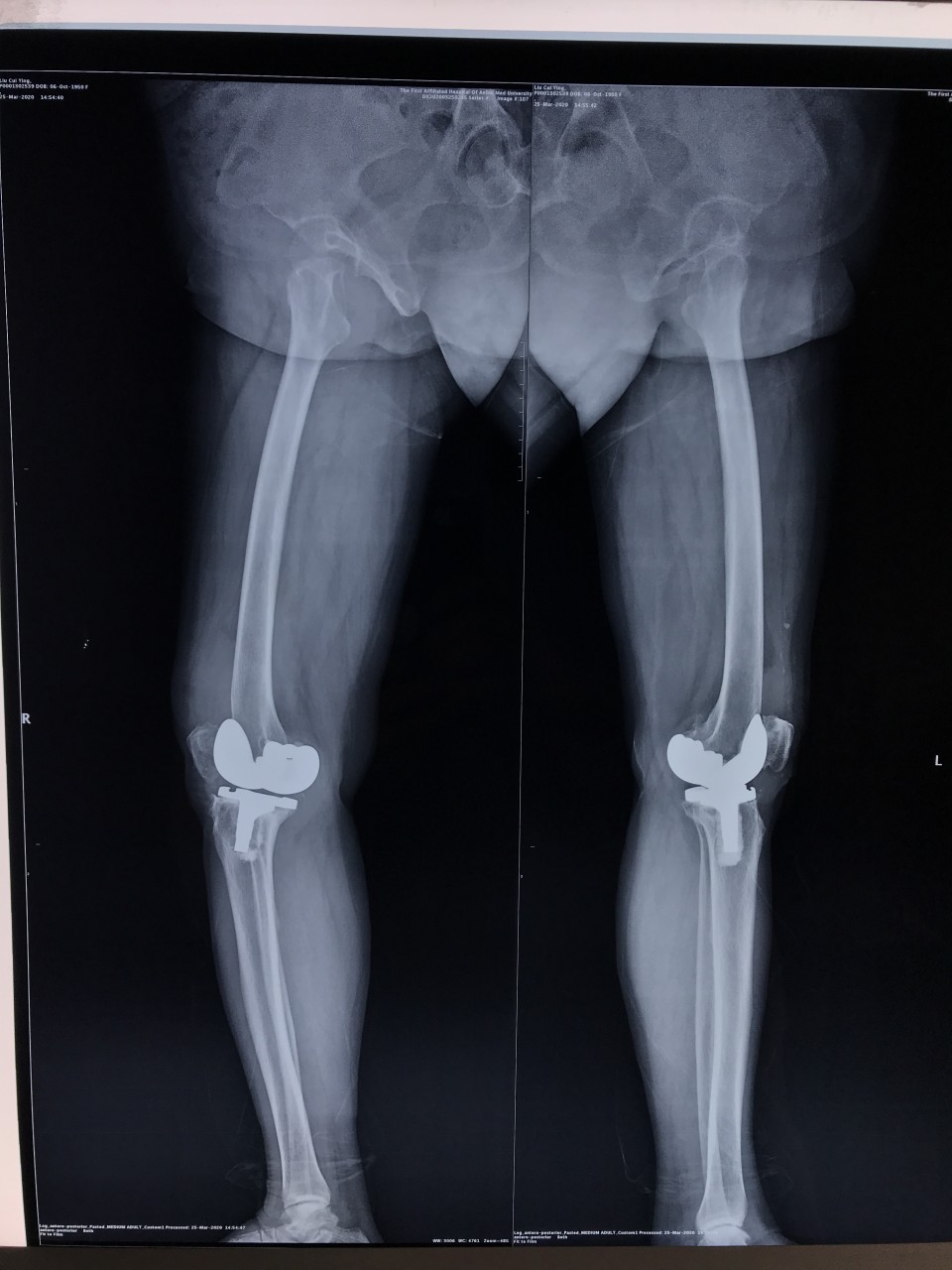 3月25日,一位69岁的女性患者因“右膝疼痛2年,加重伴活动受限1年”入院。术前摄片提示右侧膝关节假体松动。关节与显微修复外科胡孔足主任术前结合患者病史,体检及辅助检查,反复讨论,制定了精细的手术方案,术中假体安全取出,手术顺利。手术结束半小时,患者已经能够完全自主抬腿,屈曲。患者术后第二天下地正常行走。前后患者住院5天,快速康复出院。