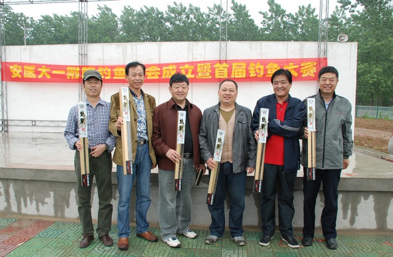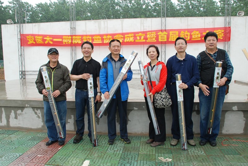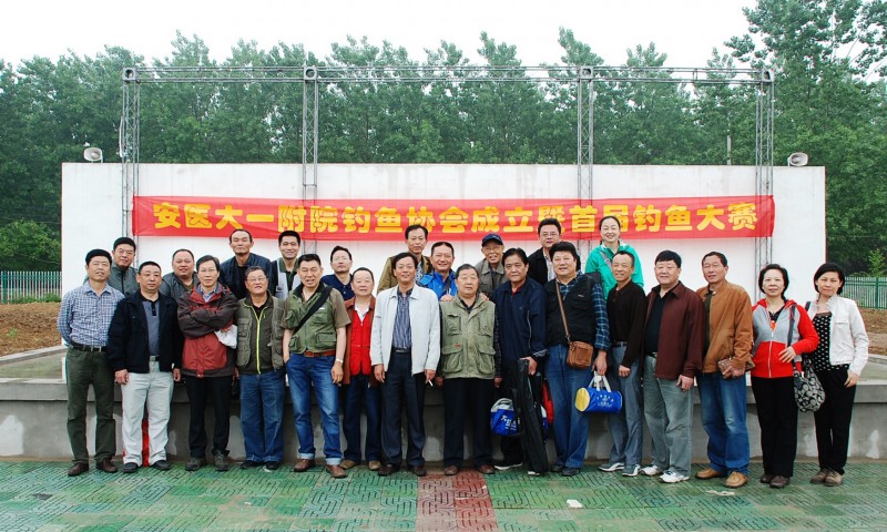五月十日上午,医院职工钓鱼协会会员在会长俞发舟的带领下,前往三十岗钓鱼比赛基地。在安医大一附院职工钓鱼协会成立的鲜红横幅下宣布钓鱼协会成立。