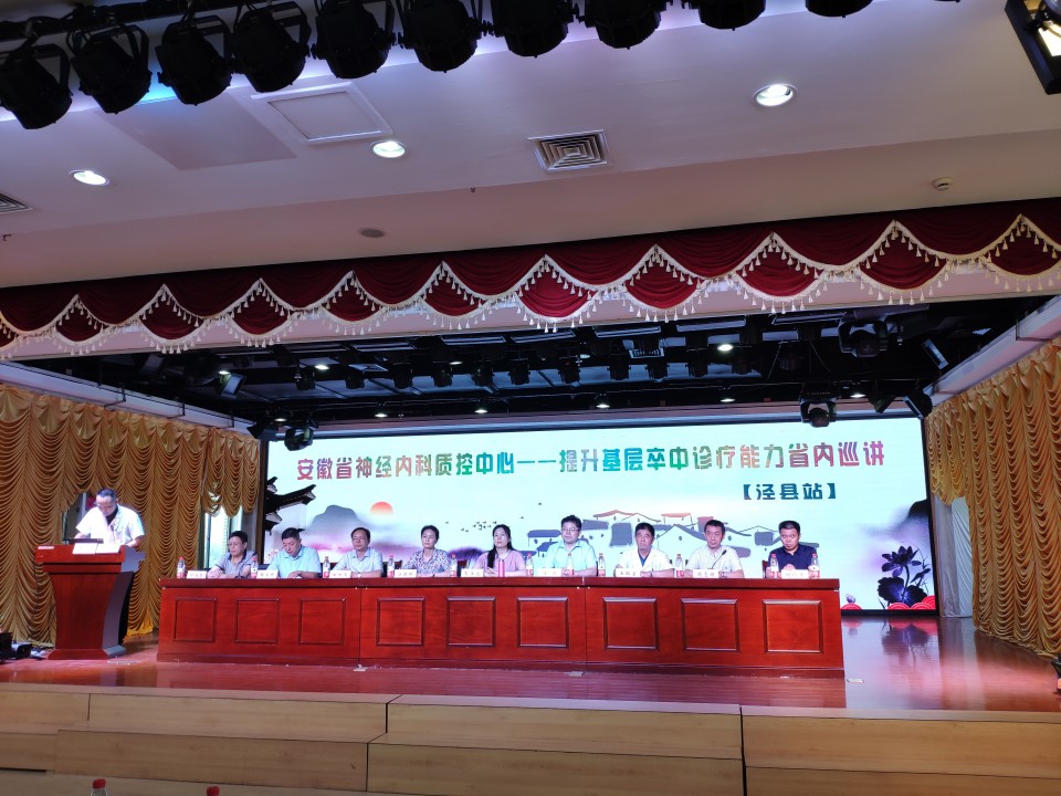 7月23日下午,由安徽省神经内科质控中心主办、泾县医院承办的关于“提升基层脑卒中诊疗能力省内巡讲活动”首场培训会在泾县医院门诊7楼会议室举行。省卫生健康委医政处主任彭玉池、泾县卫健委副主任汪朝晖、泾县医院院长王昭宝出席会议并致辞,会议由安徽省神经内科质控中心主任汪凯教授主持。省质控中心常务副主任、成员及泾县县域各级医疗单位内科骨干医生参加了此次巡讲培训会。