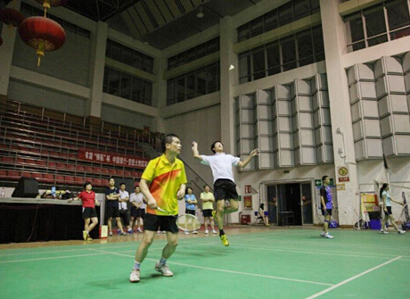 整个比赛在激烈、紧张而又和谐的气氛下进行,双方运动员各显风采,将高远球、扣杀、吊球等各路球技展现的淋漓尽致,赛场下更是喝彩声、加油声、欢呼声声声入耳。比赛中,每位参赛选手都充分发挥顽强的体育拼搏精神,此时比赛的胜负变得已不重要,不言放弃、奋力拼搏的精神充溢了整个赛场。其中几位羽毛球高手的精彩表现更是让现场气氛达到了顶点。