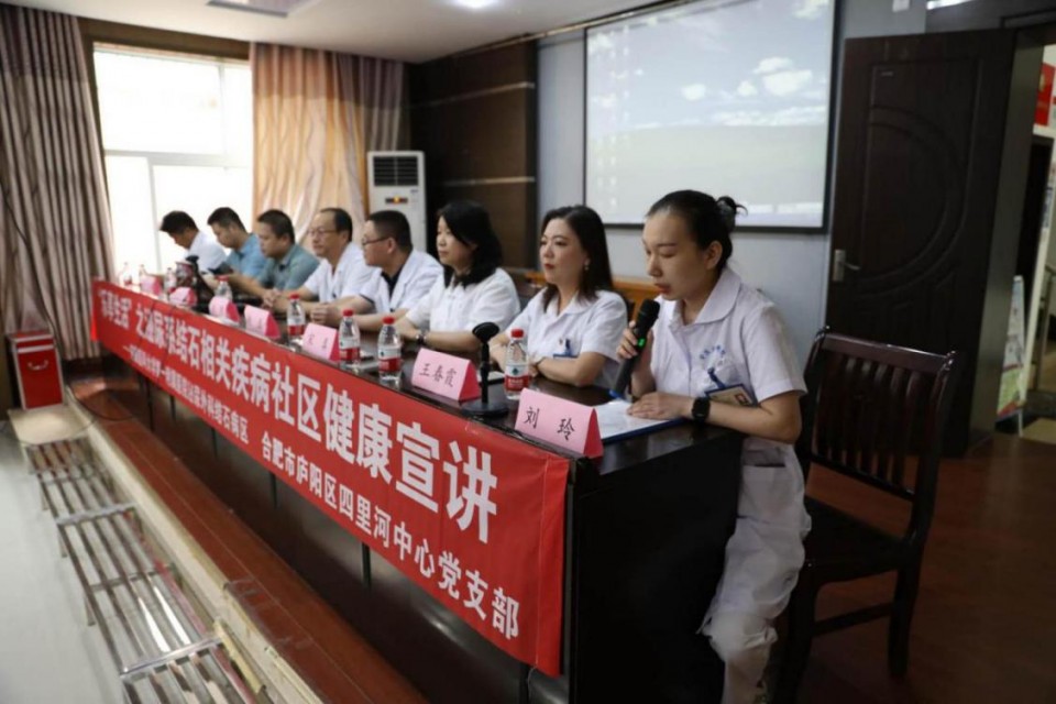 在四里河社区吴郢社居委会议室,社区居民坐得满满当当。刘明副主任医师、赵磊副主任医师、宋真护士长、王春霞护士长、宋正尧主治医师、阮厚鑫主治医师、王静主管技师、余璐主管护师、万景红护师针对泌尿系结石、泌尿系感染等方面的预防与治疗等给予健康指导,耐心答疑解惑。