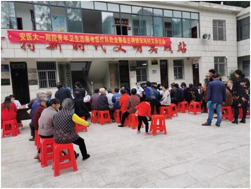 9月18日到19日,医院组织青年卫生志愿者医疗队一行11人,赴金寨县古碑镇宋河村开展义诊和健康教育活动。金寨县是1999年安徽省开启青年卫生志愿者接力计划时的首批驻点之一,也是我省革命老区。此次义诊,体现了医院党委对金寨革命老区人民的重视,把医疗服务和医学科普知识送到最需要的基层百姓身边。9月19日一大早,四面八方的村民们纷纷来到宋河村部,等候医生们的到来。8点刚过,团委书记黄尧就带领医疗组一行来到村部,刚落座就马上投入紧张的义诊活动中。