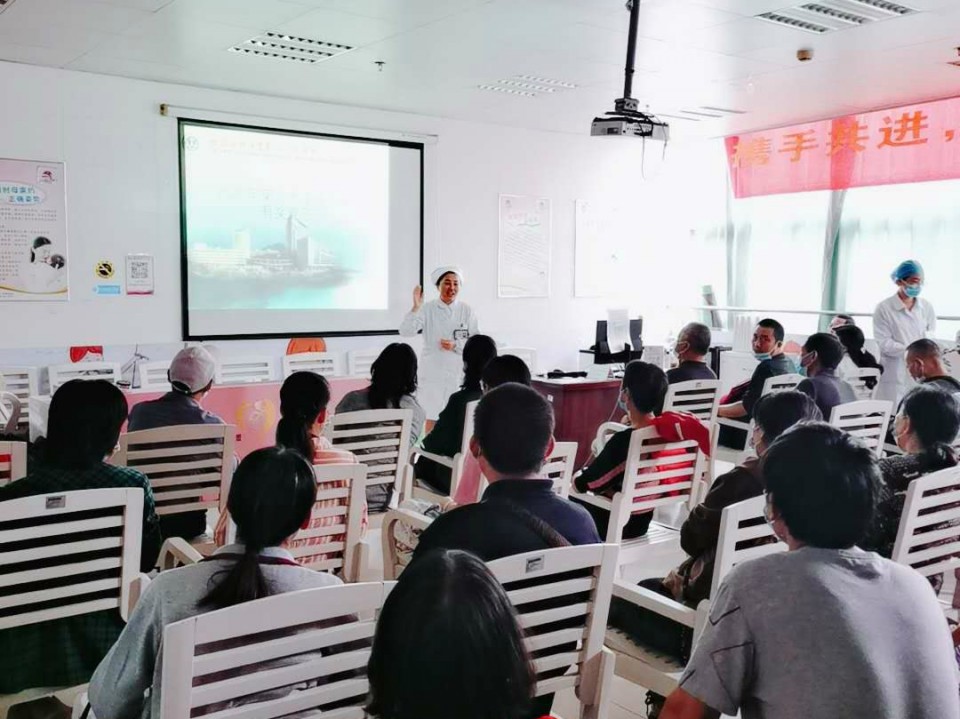 肾内科一病区护士长李锦讲解了疫情下《腹膜透析患者就诊暨100问》、主管护师曹红霞和主治医师刘朝霞就《居家腹透相关问题的认识和处理》及《腹膜透析相关感染的防治》进行了精彩的授课。李锦护士长详细介绍了新型冠状病毒肺炎预防知识,重点强调了戴口罩、勤洗手和避免交叉感染,介绍了我院肾脏内科互联网门诊的使用方法,建议患者在需要情况下,可采用互联网门诊就诊,让信息多跑路,让患者少跑路,提升就医感受。