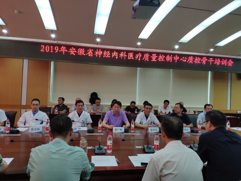 8月2日上午,由安徽省神经内科质控中心举办的地市级医院卒中及质控骨干培训会在我院干部病房二楼会议室举行。会议由神经内科陈先文主任主持,副院长费广鹤出席会议并发表致辞,神经内科专家孙中武、田仰华、杨卫民、汪敬业,安医大二附院神经内科专家王训,合肥市二院神经内科专家吴君仓及各地市级神经内科卒中及质控中心业务骨干参加了此次培训会。